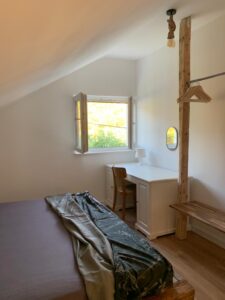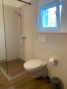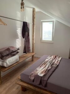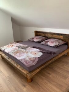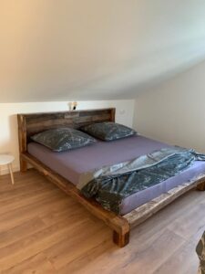 Die Maisonette Ferienwohnung mit 87 m² verfügt über 2 Schlafzimmer mit jeweils einem Doppelbett (1,80 m x 2,00 m). Esszimmer, Küche, und Gäste WC liegen im ersten Obergeschoss. Das Wohnzimmer, 2 große Schlafzimmer und Bad befinden sich im Dachgeschoss. Es steht Ihnen eine große Terrasse und ein Balkon mit einem grandiosen Ausblick auf die Umliegende Region zur Verfügung. Als weitere Schlafmöglichkeit kann man das Sofa im Wohnzimmer zur Schlafcouch umfunktionieren.